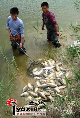 6月3日上午,記者在養(yǎng)殖戶們的魚池旁看到,工人們正在打撈池中不斷浮出水面的死魚,在此之前,四家養(yǎng)殖戶總共有近10噸的死魚被拉走,這些魚只能作為死魚賤價銷售,加上未打撈的沉在池底的死魚,總共的損失有幾十萬元。