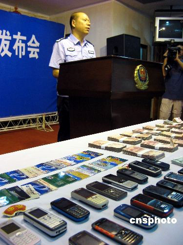 6月9日,福州市公安局舉行新聞發(fā)布會(huì)披露,福州警方奔赴廣東、海南、遼寧3省、連續(xù)奮戰(zhàn)9天,于6月3日摧毀了跨國(guó)虛假信息詐騙團(tuán)伙,抓獲洪某立等8名成員,破獲涉案金額達(dá)240萬(wàn)元的特大虛假信息詐騙案,追繳贓款人民幣178萬(wàn)元,凍結(jié)贓款29.9萬(wàn)元,繳獲小轎車、手機(jī)等作案工具。中新社發(fā) 張彩林 攝