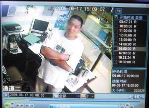 發(fā)現(xiàn)了小偷蹤跡的工作人員急忙報(bào)警,為了保存證據(jù),技術(shù)人員還在民警的要求下將錄像進(jìn)行了下載,并以文件的形式保存在了電腦中。從監(jiān)控錄像中可以看出,這名男子的年齡在40歲上下,身體較胖。當(dāng)時(shí)他身穿一件寬大的T恤衫和一條卡其色的短褲。剛開始時(shí),男子是以購買攝像頭的名義跟銷售人員進(jìn)行咨詢,而且還查看了一款售貨員推薦的機(jī)型。
