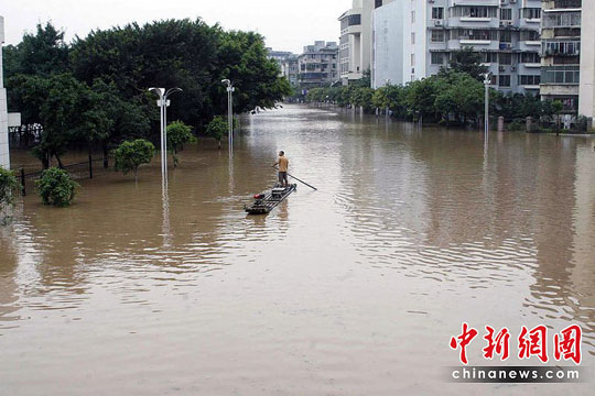 6月17日,廣西桂林,漓江邊上的農(nóng)田已成澤國(guó)。當(dāng)天,廣西桂林市出現(xiàn)大到暴雨、局部大暴雨天氣。桂林市及周邊的臨桂、永福等縣均發(fā)布暴雨紅色預(yù)警信號(hào)。受此影響,漓江水位迅速上漲,17日10時(shí)39分,市區(qū)段漓江水位達(dá)146米,超警戒水位0.3米。