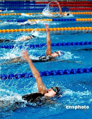6月25日,為期五天的第十一屆全運(yùn)會游泳預(yù)選賽暨2009年全國青年游泳錦標(biāo)賽落下帷幕。本次比賽為第十一屆全運(yùn)會游泳決賽的資格賽,分別在天津和大連兩個賽區(qū)舉行,達(dá)標(biāo)運(yùn)動員取得了將于今年十月份舉行的全運(yùn)會游泳決賽的資格。天津賽區(qū)有江蘇、浙江、安徽、福建、廣東等14支代表隊(duì)的252名選手報名參賽;大連賽區(qū)有北京、遼寧、上海、貴州、解放軍等12支代表隊(duì)的314名選手報名參賽。中新社發(fā) 劉德斌 攝