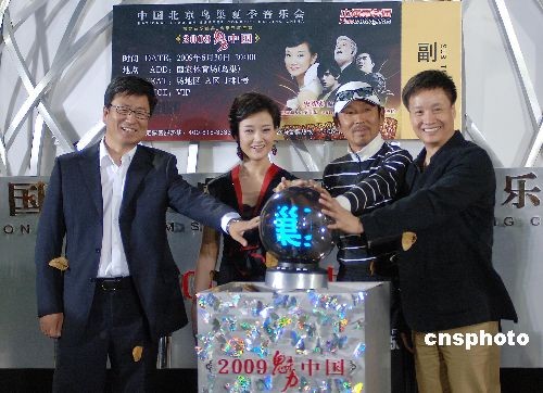 5月18日傍晚,將于6月30日上演的2009魅力中國北京鳥巢夏季音樂會,在北京召開第二次新聞發(fā)布會暨開票儀式,宣布音樂會正式進入倒計時。陳道明、閻維文、白巖松三位“好男人”作為宋祖英的好友現(xiàn)場助陣。據(jù)透露,這場音樂會將是鳥巢第一次使用單面立體舞臺,將配置最頂尖的燈光音響設(shè)備,而宋祖英在音樂會上不僅要以充滿視覺沖擊的六套華服實現(xiàn)形象大突破,更有望與周杰倫或者多明戈激情共舞。中新社發(fā) 李學(xué)仕 攝