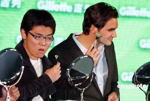 11月9日,“網(wǎng)壇天王”費(fèi)德勒在上海出席一家品牌主辦的球迷見面活動(dòng),并在現(xiàn)場(chǎng)主持為數(shù)一千人的剃須成人禮儀式。中新社發(fā) 湯彥俊 攝