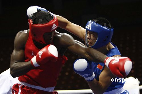 十一月十九日,“好運(yùn)北京”2007年國(guó)際拳擊邀請(qǐng)賽在北京工人體育館進(jìn)行第四單元的比賽,本次邀請(qǐng)賽有來(lái)自十七個(gè)國(guó)家和地區(qū)的十八支隊(duì)伍參加,采用單敗淘汰制方式,進(jìn)行預(yù)賽、半決賽、決賽共七十場(chǎng)比賽,比賽時(shí)間為十一月十七日至二十二日。中新社發(fā) 盛佳鵬 攝