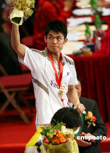 十二月二日,頭號(hào)種子林丹在二零零七中國(guó)香港羽毛球超級(jí)賽決賽中以二比一戰(zhàn)勝馬來(lái)西亞名將李宗偉,奪得冠軍。中新社發(fā) 武仲林 攝