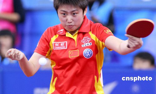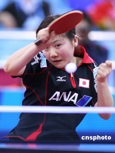 12月14日,2007年國際乒聯(lián)職業(yè)巡回賽總決賽女單首輪,頭號種子郭躍在先失一局的情況下連扳4局淘汰日本選手福原愛,昂首晉級八強。中新社發(fā) 富田 攝