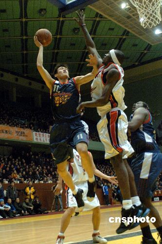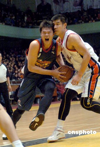 2007年12月30日,2007-08CBA職業(yè)聯(lián)賽常規(guī)賽第28輪在山東濟(jì)南的一場(chǎng)比賽中,主場(chǎng)作戰(zhàn)的山東黃金男籃以106比104勝?gòu)V東宏遠(yuǎn)男籃。中新社發(fā) 張侃 攝