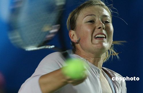 一月二日,香港網(wǎng)球精英賽在維多利亞公園網(wǎng)球場(chǎng)揭開帷幕,包括伊萬(wàn)諾維奇、德門蒂埃娃、大威廉姆斯、彭帥、查克維塔澤、漢圖楚娃、莎拉波娃以及沃茲尼亞基在內(nèi)的八位網(wǎng)壇人氣女選手將在賽場(chǎng)上一決高下。圖為莎拉波娃在首場(chǎng)比賽中。中新社發(fā) 武仲林 攝