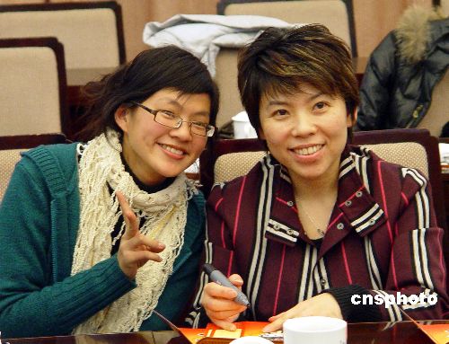 1月30日,奧運(yùn)冠軍鄧亞萍、葉喬波出席一項(xiàng)以“攜手海峽·走近奧運(yùn)”為主題的臺(tái)灣大學(xué)生冬令營閉營式。鄧亞萍在北京奧運(yùn)賀年卡上為臺(tái)灣大學(xué)生簽名留念。兩位知名運(yùn)動(dòng)員當(dāng)天與臺(tái)灣同學(xué)們討論奧運(yùn)場(chǎng)館建設(shè),力薦北京各類特色建筑。中新社發(fā) 劉舒凌 攝
