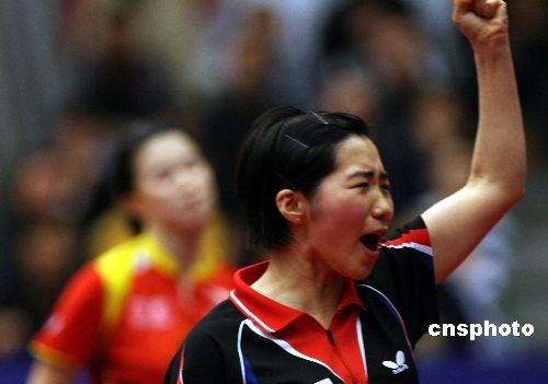 三月七日晚,王楠在香港舉行的二零零八奧運會乒乓球亞洲區(qū)預選賽上以三比四憾負韓國選手唐娜,未能提前一輪奪得奧運入場券。中新社發(fā) 武仲林 攝