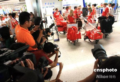 7月28日,澳大利亞和俄羅斯隊(duì)大隊(duì)人馬抵達(dá)青島,受到熱烈歡迎,成為媒體焦點(diǎn)。運(yùn)動(dòng)員們十分高興,榮幸自己得到明星般的歡迎。 中新社發(fā) 羅波 攝