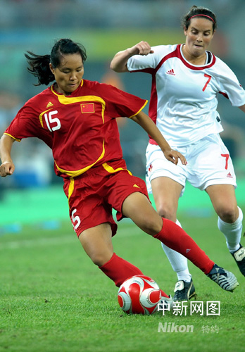 8月9日晚,中國(guó)女足在天津奧體中心水滴體育場(chǎng)與加拿大女足進(jìn)行奧運(yùn)第二場(chǎng)小組賽的較量。目前中國(guó)和加拿大女足同積3分,這場(chǎng)E組積分榜首之爭(zhēng)事關(guān)出線大局。中國(guó)女足15號(hào)周高萍帶球突破。中新社發(fā) 陳文 攝