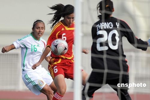 當(dāng)?shù)貢r(shí)間11月9日,備戰(zhàn)女足世界青年錦標(biāo)賽的中國青年女子足球隊(duì)在洛杉磯與墨西哥青年女足隊(duì)進(jìn)行了一場熱身賽,結(jié)果兩隊(duì)踢成一比一。中新社發(fā) 張煒 攝