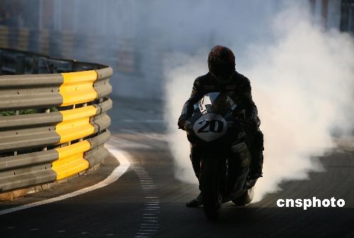 十一月十五日,英國(guó)選手伊斯頓(三號(hào))在澳門舉行的“名門世家”第五十五屆澳門格蘭披治大賽車上奪得第四十二屆澳門格蘭披治摩托車大賽冠軍。中新社發(fā) 武仲林 攝