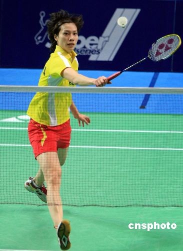 11月19日,在上海舉行的2008年中國羽毛球公開賽展開正賽首輪爭奪,中國名將謝杏芳以2比0輕取日本選手后藤愛,順利晉級。中新社發(fā) 湯彥俊 攝