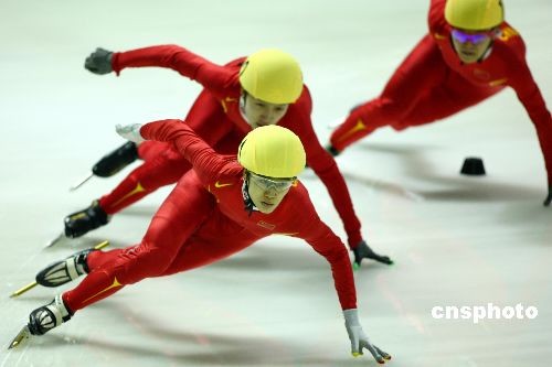 2月20日,大冬會短道速滑比賽在哈爾濱理工大學滑冰館繼續(xù)進行。在女子500米的比賽中,中國選手表現神勇,包攬了該項比賽的前四名。其中劉秋宏(前)以44秒862的成績問鼎冠軍,為中國隊在本屆大冬會上奪得第二枚金牌。李文文和孟曉雪分獲銀牌與銅牌,成績?yōu)?4秒929和45秒084。中新社發(fā) 富田 攝