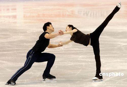 當地時間三月二十三日下午,中國雙人滑選手張丹/張昊在洛杉磯進行賽前訓練。二00九年世界花樣滑冰錦標賽二十四日將在洛杉磯開幕。中國名將、都靈冬奧會亞軍張丹/張昊和世錦賽冠軍龐清/佟健將向雙人滑金牌發(fā)起沖擊。中新社發(fā) 張煒 攝