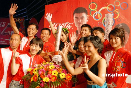10月24日晚,海南“2008北京奧運(yùn)會火炬手頒獎禮”在?谂e行。李平、譚麗林、凌萍、韓燕等10人當(dāng)選為可口可樂2008奧運(yùn)火炬手。據(jù)悉,經(jīng)北京奧組委審核后,這10名火炬手將正式成為北京奧運(yùn)會火炬手。超女冠軍李宇春現(xiàn)身現(xiàn)場演唱助興。據(jù)悉,海南是2008北京奧運(yùn)火炬?zhèn)鬟f首傳省。中新社發(fā) 善平 攝