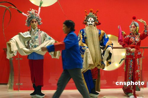 11月22日晚,在梅蘭芳大劇院內(nèi)的京劇藝術(shù)展示大廳內(nèi),約50尊京劇人物造型卡通模特被安置就位。11月28日,梅蘭芳大劇院將正式掛牌開(kāi)業(yè)。中新社發(fā) 鄒憲 攝