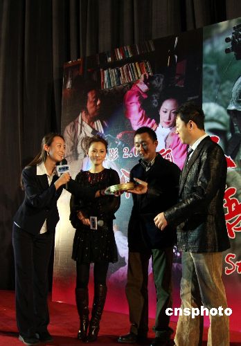 12月17日晚,《大電影2.0》在北京舉行首映式。首映結束后,該片導演阿甘攜郭濤等主要演員與影迷見面。12月17日正值郭濤生日,活動主辦方為郭濤準備了一份特別的生日禮物——首映式的全部入場券票根、一張觀影貴賓卡和一格《大電影2.0》的膠片。中新社發(fā) 王昊 攝