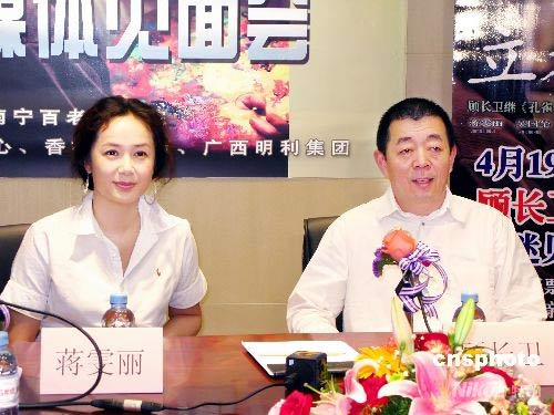 2008年4月19日,顧長衛(wèi)、蔣雯麗夫婦到廣西南寧宣傳電影《立春》。有記者問蔣雯麗,拍廣告、電視劇和電影,自己最喜歡的是哪一個(gè)?蔣雯麗說最喜歡的還是電影,不是因?yàn)檎煞蝾欓L衛(wèi)的關(guān)系,而是因?yàn)殡娪笆撬齼簳r(shí)的夢。中新社發(fā) 駱文剛 攝