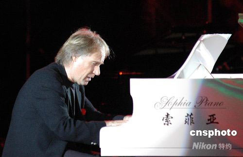 圖:“鋼琴王子”克萊德曼在廣西南寧賑災(zāi)演出