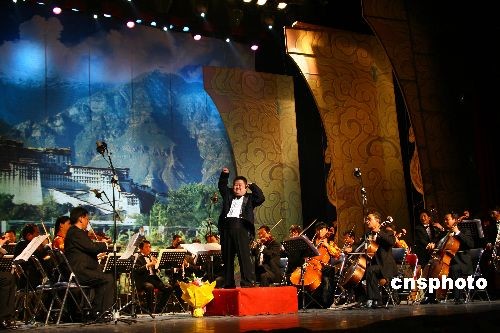 11月13日晚,著名智障音樂(lè)指揮家舟舟在拉薩民族文化藝術(shù)宮憑著對(duì)音樂(lè)的天賦感悟和高超的指揮藝術(shù)將觀眾帶進(jìn)神圣的音樂(lè)殿堂。身著黑色燕尾服的舟舟激情四溢的揮舞著指揮棒,劃出優(yōu)美的弧線、打著鮮明的拍點(diǎn),再輔以豐富的表情,指揮西藏愛(ài)樂(lè)樂(lè)團(tuán)的樂(lè)手們將《卡門序曲》、《拉德斯基進(jìn)行曲》、《匈牙利舞曲》等世界經(jīng)典名曲演繹出令人心醉神迷的優(yōu)美旋律。中新社發(fā) 那勇順 攝