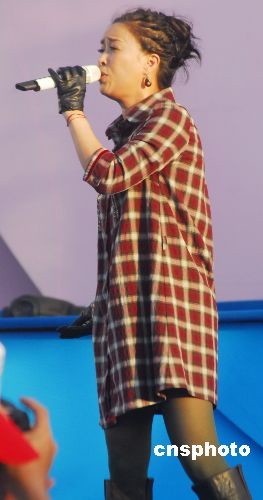 2008年11月16日,那英在第九屆中國海南島歡樂節(jié)開幕式上獻(xiàn)歌《征服》、《我只喜歡你》,用熟悉的旋律征服了眾多歌迷,掀起一陣快樂旋風(fēng),并引發(fā)現(xiàn)場觀眾大合唱。那英一身紅格子長衣至大腿,以高筒靴、黑手套、網(wǎng)狀絲襪,盡現(xiàn)個性與神秘魅力。她說在歡樂節(jié)上有自己的許多第一次——第一次到文昌,第一次參加海南歡樂節(jié),第一次在歡樂節(jié)上獻(xiàn)歌,更是第一次在下午站在海邊舞臺上演唱。中新社發(fā) 善平 攝