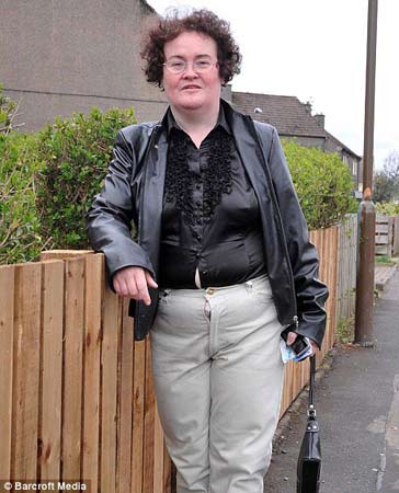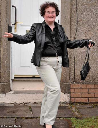 6日,經(jīng)過(guò)一番打扮,蘇珊走出家門(mén)。面帶招牌式的笑容,蘇珊在自家門(mén)前大擺POSE,讓媒體記者拍個(gè)夠。開(kāi)心的蘇珊并沒(méi)有注意到當(dāng)時(shí)的形象并不得體——她忘記將褲子的拉鏈拉上。由于褲子太緊而拉鏈又沒(méi)拉,里面的衣服大有往外擠的陣勢(shì)。老式黑色襯衣緊緊地繃在她身上,更凸顯了她的贅肉。