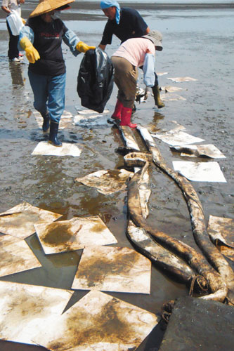 中新網(wǎng)6月30日電 據(jù)臺(tái)灣《聯(lián)合晚報(bào)》報(bào)道,被劃為野生動(dòng)物保護(hù)區(qū)的臺(tái)中縣高美濕地29日晚7時(shí)多被民眾發(fā)現(xiàn)出現(xiàn)大片油污,疑似被油槽車傾倒大量廢油,油污面積從清水大排到出?冢d延約2公里。臺(tái)“海巡署”及民間環(huán)保義工近50人趕緊以攔油索控制油污擴(kuò)散,臺(tái)中縣保育科長(zhǎng)李代娟初步估計(jì),遭油污面積達(dá)1000平方米,其中有1/4是保護(hù)區(qū)。