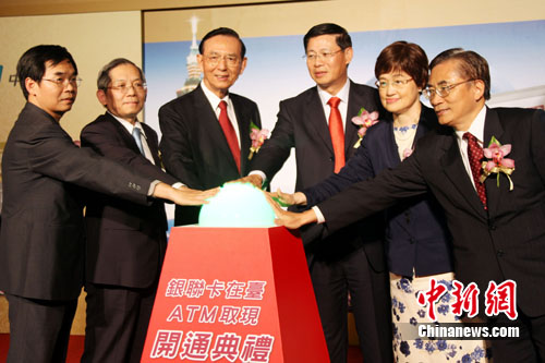 中新網(wǎng)臺北6月30日電(記者 黃少華)6月30日,中國銀聯(lián)、臺灣財金公司、臺灣銀行公會舉行記者會,宣布銀聯(lián)卡在臺ATM提領(lǐng)新臺幣、預(yù)借現(xiàn)金及余額查詢服務(wù)正式開通。
