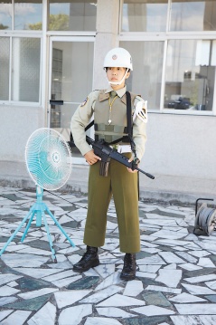 中新網(wǎng)7月1日電 據(jù)臺灣《聯(lián)合報》報道,“憲兵”站崗吹電風(fēng)扇?這幕顛覆傳統(tǒng)“憲兵”站崗的畫面出現(xiàn)在花蓮空軍基地,一名全副武裝的女大兵,身穿重達(dá)1.5公斤的防彈背心,制服密不透風(fēng),部隊長官體諒她,炎炎夏日擔(dān)心她中暑,貼心提供風(fēng)扇為她消暑。