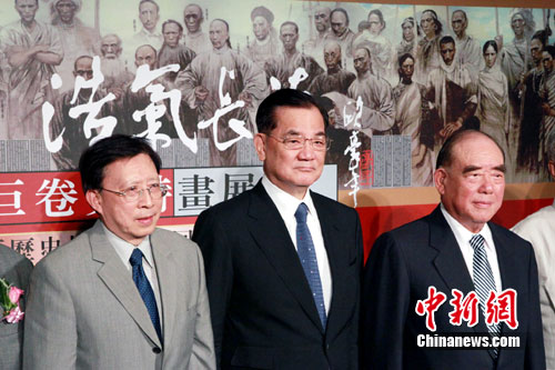 劉兆玄說(shuō),大陸畫(huà)家們用藝術(shù)來(lái)還原歷史,用畫(huà)作凸顯史詩(shī),彌足珍貴。畫(huà)作能跨越海峽來(lái)臺(tái)展出更是壯舉。他說(shuō),兩岸分隔幾十年,2005年連戰(zhàn)與中共中央總書(shū)記胡錦濤會(huì)面,兩岸走向和平的道路,也是今天這項(xiàng)壯舉能夠順利舉行的時(shí)代意義。