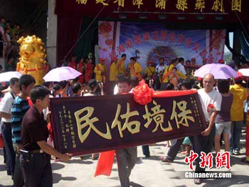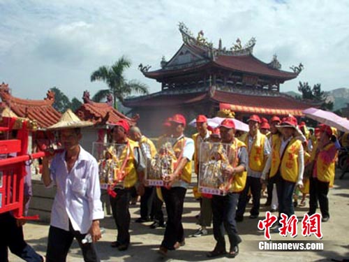 中新網(wǎng)漳州7月9日電(張文藝)臺(tái)灣“三官大帝廟”尋根謁祖團(tuán)90余人,8日到福建漳浦赤嶺畬族鄉(xiāng)認(rèn)祖祭祖,進(jìn)行相關(guān)民間民俗文化交流活動(dòng)。