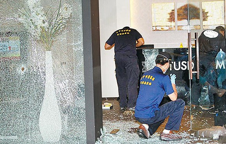今年五月二十八日下午,“少年殺手”廖國豪闖入臺中角頭翁奇楠(四十歲)開設(shè)的日月生物科技公司,近距離朝翁奇楠、賴榮振(三十九歲)連開十八槍,翁奇楠當(dāng)場死亡、賴榮振就醫(yī)后不治,案發(fā)后曾查出有警員在場打麻將,昨日再傳現(xiàn)場彈殼與彈頭數(shù)量不符,引發(fā)現(xiàn)場遭破壞、在場警員開槍的質(zhì)疑,但臺中市長胡志強(qiáng)表示:“揣測的,未必是真的!