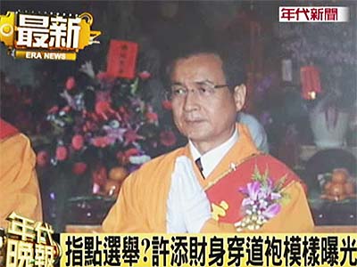 中新網(wǎng)8月6日電 據(jù)臺灣“今日新聞網(wǎng)”報道,民進黨高雄縣長楊秋興宣布參選大高雄市長之后,同黨籍臺南市長許添財?shù)南乱徊揭趺醋鰝涫芡饨珀P注,有媒體取得許添財前往濟公廟參拜的照片,直擊許添財身穿濟公道袍參加法會的虔誠模樣。外傳廟中的濟公師父還曾經(jīng)給許添財指點迷津,建議他8月8日當天宣布參選大臺南。