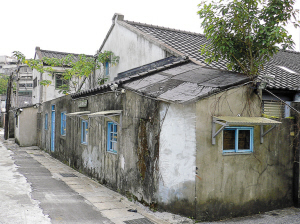 一位旁邊的住戶告訴記者,眼前的四四南村,就是由兵工廠的員工及眷戶們居住的區(qū)域,原地曾是日軍陸軍庫房。整體建筑為“魚骨狀”架構(gòu),依然保持著當(dāng)年的樣貌,窄窄的過道,低矮的屋頂,灰黑色的磚墻,狹小的居住面積。據(jù)統(tǒng)計(jì),四四南村原計(jì)劃在1999年隨眷村改建政策拆除,但在1991年3月,被臺(tái)北市政府列為“歷史建筑物”,并在1993年10月,改為信義區(qū)公民會(huì)館,將眷村內(nèi)的生活用博物館的方式展出,并提供市民租借為展覽活動(dòng)場地。原建物并未變動(dòng),連圍墻也都還保留著。