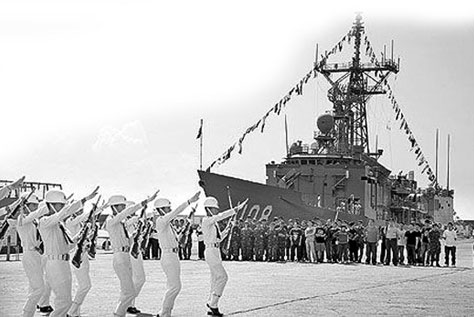 臺軍中年頭最久的傳統(tǒng)莫過于“海龍王大典”。據(jù)臺媒報(bào)道,臺海軍的敦睦遠(yuǎn)航支隊(duì)每年要穿越赤道一次,所有艦艇一字排開,橫著穿過赤道。同時(shí)艦艇上的汽笛拉響一分鐘,艦尾則噴水柱以示慶祝。除值班官兵外,所有人都要到甲板集合,舉行 “海龍王大典”。儀式由支隊(duì)長或艦長主持,他們帶頭焚香禱告并獻(xiàn)上牲果祭拜,祈求上天保佑航行平安。接著,甲板上會出現(xiàn)由海軍官校學(xué)生扮演的“海龍王” 和“蝦兵蟹將”。他們身穿龍王服、手持龍王杖、頭戴龍王面具,煞有介事地“出巡”,隨后向全艦官兵宣讀“圣旨”,同意艦艇通過赤道線!昂}埻酢边會頒發(fā)“過赤道證書”,由艦長恭敬接過。