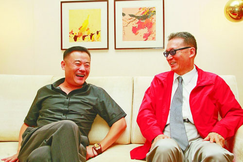 海派清口代表人物周立波和著名指揮家余隆昨天也特別前來(lái)拜訪(fǎng)李敖。周立波王熙鳳一樣人未進(jìn)門(mén)聲先傳,“大師大師”地叫進(jìn)門(mén)來(lái),邊握手邊贊李敖帥,沒(méi)想到李敖很較真,“你贊美一個(gè)75歲的人好帥?”“真的?你有75歲?我本來(lái)以為這個(gè)50歲的人長(zhǎng)得有點(diǎn)老!