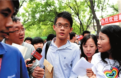 昨天上午,李戡無疑是北大今年的新生中最被關(guān)注的一個(gè)。數(shù)十名記者把李戡圍得寸步難行,對(duì)于這樣的架勢(shì),李戡表示已經(jīng)在意料之中,但是他希望從今天開始自己的生活可以恢復(fù)平靜。