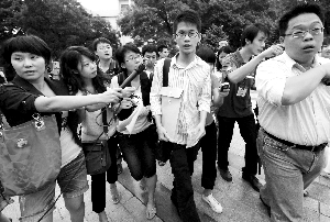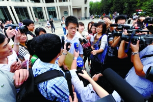 李戡戴著黑邊眼鏡,身穿藍(lán)色豎條的白底襯衫、黑色褲子,不茍言笑。他像一塊磁石一樣吸引著攝像鏡頭和錄音筆,從報(bào)到、辦理飯卡到宿舍,再到校外,李戡一直在不停地回答著記者的問(wèn)題。