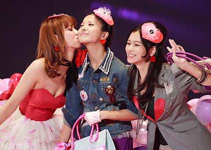 徐若瑄日前在微博上炮轟經(jīng)紀(jì)公司冷落她,引發(fā)各界關(guān)注,但是這件事并沒(méi)有影響她在臺(tái)上的演出,秀出翹臀、眨眼裝可愛(ài)。粉紅色短褲搭配黑色高跟鞋,讓她的腿顯得特別修長(zhǎng),既性感又可愛(ài)的扮相獲得滿堂彩。