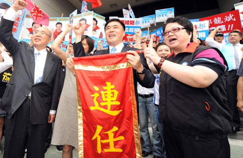 中新網(wǎng)9月15日電 據(jù)“中央社”報(bào)道,臺(tái)北市長(zhǎng)參選人郝龍斌15日在妻子高閬仙、國(guó)民黨榮譽(yù)主席吳伯雄陪同下,辦理參選登記。郝龍斌說(shuō),在紛擾的時(shí)刻,感謝支持者力挺,并高喊“我一定要贏、我一定會(huì)贏、我們會(huì)勝利”。