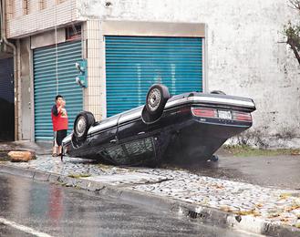 中新網(wǎng)9月20日電 據(jù)臺(tái)灣《聯(lián)合報(bào)》報(bào)道,臺(tái)風(fēng)“凡那比”(大陸稱(chēng)“凡亞比”)強(qiáng)勁,花蓮刮起17級(jí)強(qiáng)風(fēng),一整排十多輛轎車(chē)車(chē)窗被吹裂“開(kāi)花”,轎車(chē)四腳朝天,摩托車(chē)騎士閃躲滿(mǎn)天飛舞的招牌鐵片,有民眾以“血滴子”來(lái)形容它的恐怖。