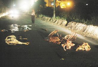 中新網(wǎng)9月27日電 據(jù)臺(tái)灣《聯(lián)合報(bào)》報(bào)道,臺(tái)灣云林縣北港鎮(zhèn)防汛道路25日晚驚見(jiàn)牛骨、牛頭、牛尸遍地,附近居民被腥味熏到難以入眠,路過(guò)的駕駛員被尸體嚇到,以為是棄嬰,險(xiǎn)些釀成車(chē)禍。