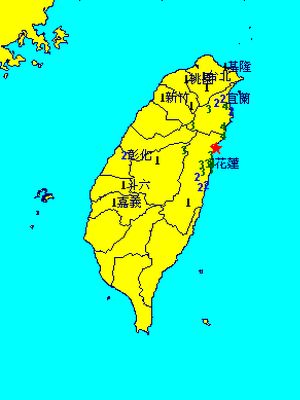 據(jù)報(bào)道,花蓮29日凌晨發(fā)生5級(jí)有感地震,震中位置在北緯24.16度、東經(jīng)121.67度,約在秀林地震站東北方11.3公里處,震源深度為19.2公里,測(cè)得的最大震度達(dá)5級(jí),出現(xiàn)在花蓮太魯閣地區(qū),宜蘭南澳和花蓮市等地區(qū)都是4級(jí)。