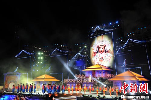 中新網(wǎng)臺(tái)灣彰化10月3日電 閩臺(tái)兩地聯(lián)合主辦的《媽祖之光•福航彰化》大型電視晚會(huì),2日晚在臺(tái)灣彰化縣體育場(chǎng)盛大開場(chǎng)。