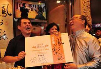 胡志強說,她的太太邵曉鈴就讀大甲鎮(zhèn)東陽小學(xué),所以他也是大甲的女婿,今年裕珍馨參加2010菠蘿好酥獲獎后,他也因而認識了裕珍馨老板陳裕賢,知道他很用心制作,制作過程也很衛(wèi)生,所以主動要求為裕珍馨的產(chǎn)品代言,希望把好產(chǎn)品推銷給全世界的消費者。