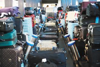 改用人工處理后,出境行李從九條輸送帶匯集到地下室行李處理區(qū)兩個人工處理轉盤,地勤公司出動上百位人力圍在轉盤四周,目視手動檢查每件行李托運吊牌,再搬進旁邊個別班機專用貨柜。由于人工處理轉盤空間有限,貨柜圍著轉盤排了兩圈,地勤人員揮汗搬行李,撐起“緊急應變”機制。