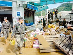 昨天一早大水消退后,蘇澳民眾在四千多名臺(tái)軍協(xié)助下,展開(kāi)清理家園工作。蘇澳主要道路中山路上原本是雙線道,但因?yàn)?zāi)民將家中受損的家具、沙發(fā),全部搬到大馬路暫時(shí)堆置,整個(gè)蘇澳市彷佛就像大型垃圾場(chǎng)般紊亂,加上軍用卡車、垃圾車、推土機(jī)不斷來(lái)回,過(guò)往交通一度受阻。
